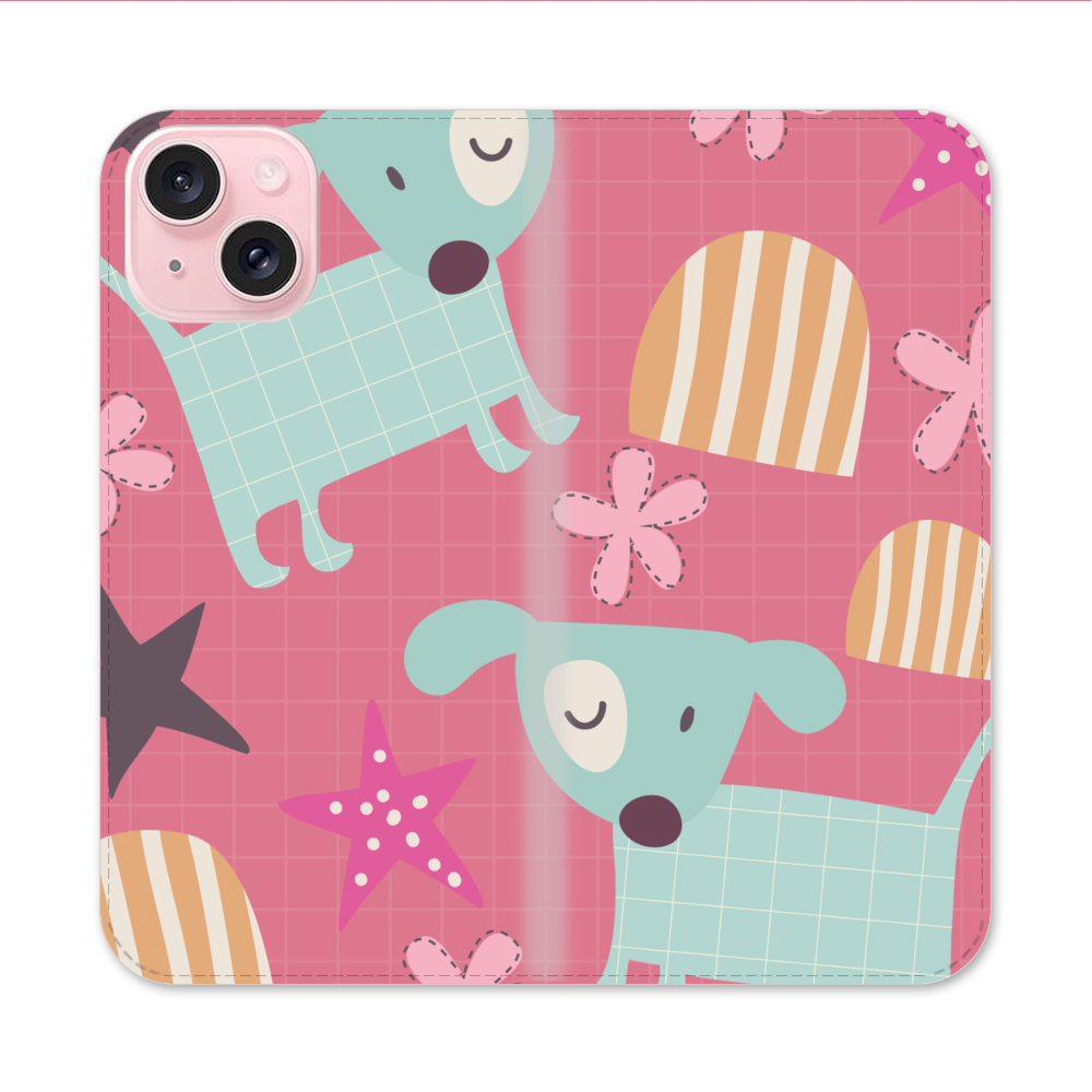 Kawaii Hündchen Apple iPhone 15 Flip Case● Seitlich klappbar