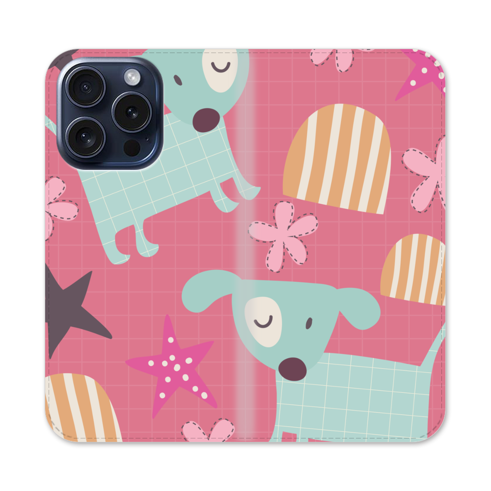 Kawaii Hündchen Apple iPhone 15 Pro Flip Case● Seitlich klappbar