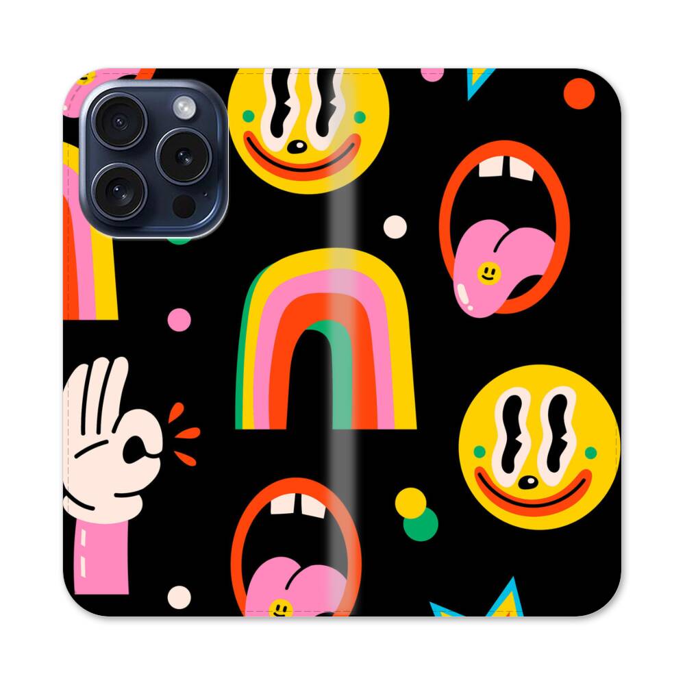 Regenbogen Lächeln Apple iPhone 15 Pro Flip Case● Seitlich klappbar
