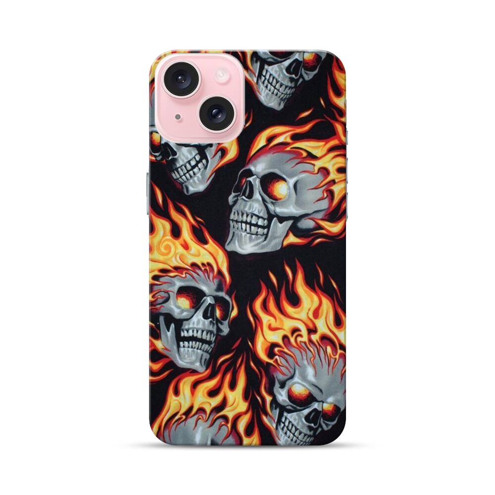 Feuer Totenkopf Apple iPhone 15 Hülle● Rundum bedruckbar