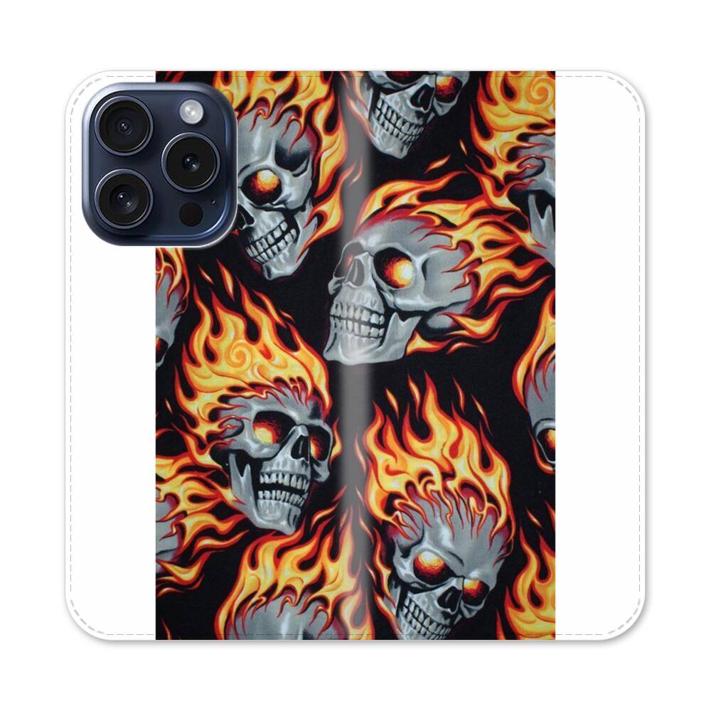 Feuer Totenkopf Apple iPhone 15 Pro Flip Case● Seitlich klappbar