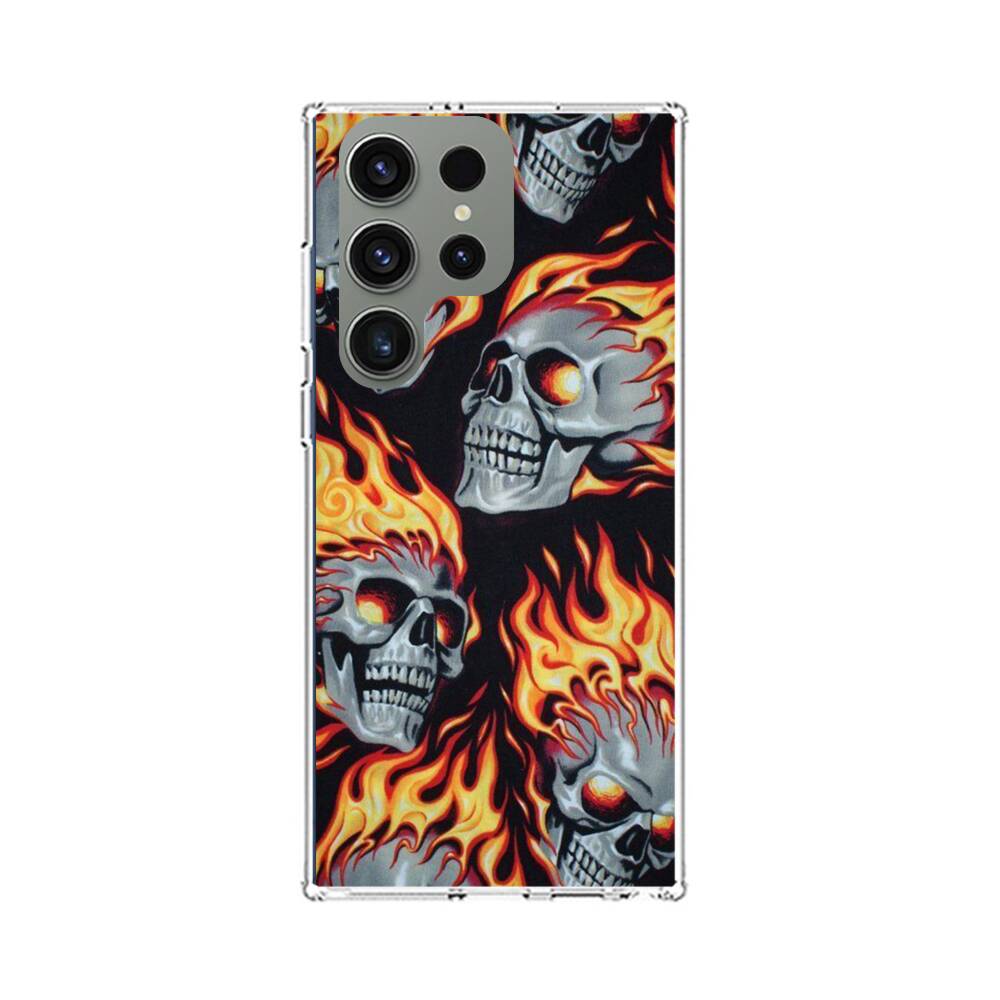 Feuer Totenkopf Samsung Galaxy S23 Ultra Silikon Hülle● Sehr robust & langlebig