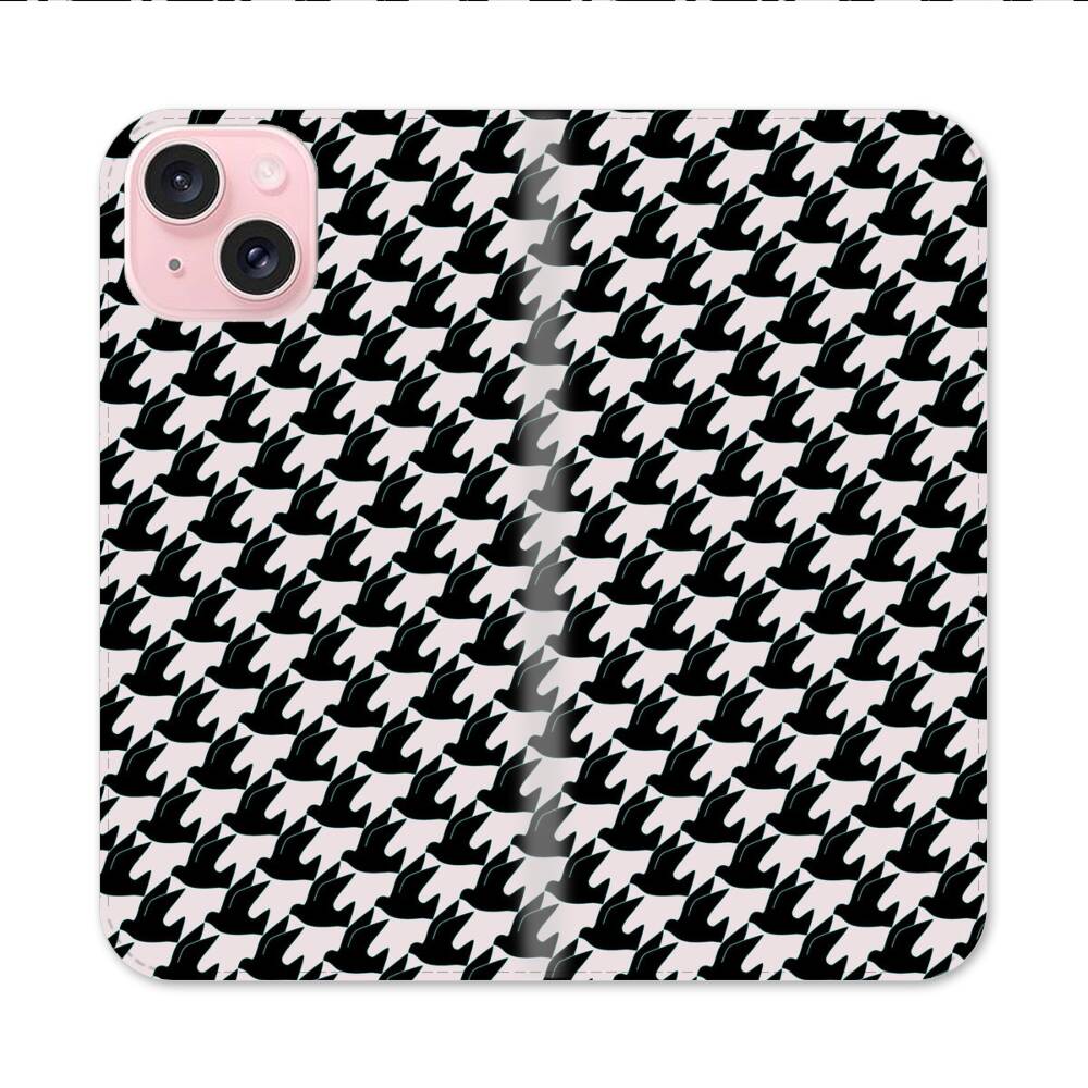 Nahtlose Muster Mit Weißen Tauben Apple iPhone 15 Flip Case● Seitlich klappbar