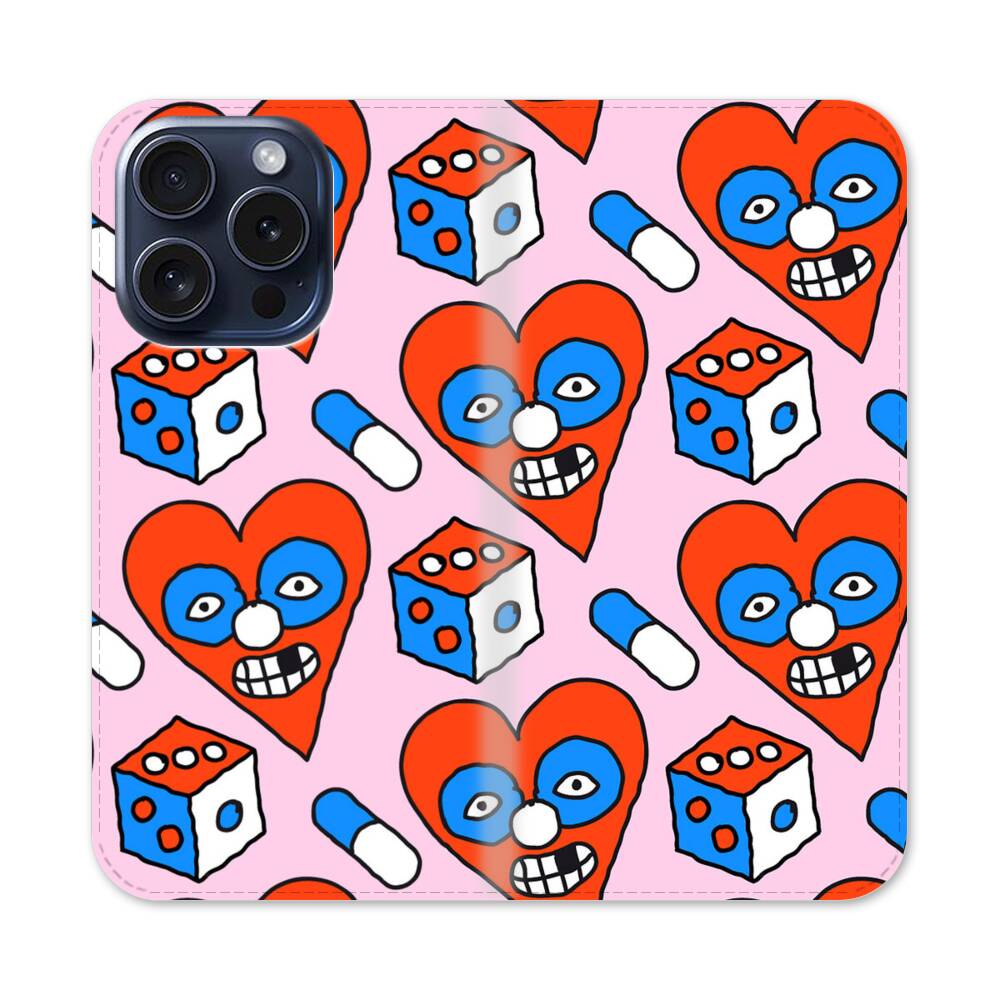 Lustige herzförmige Clowns Apple iPhone 15 Pro Flip Case● Seitlich klappbar