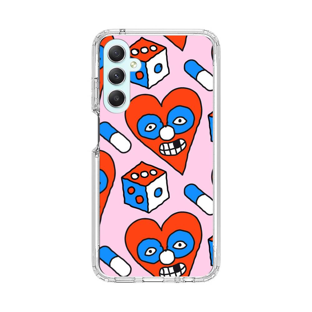 Lustige herzförmige Clowns Samsung Galaxy A34 Silikon Hülle● Sehr robust & langlebig