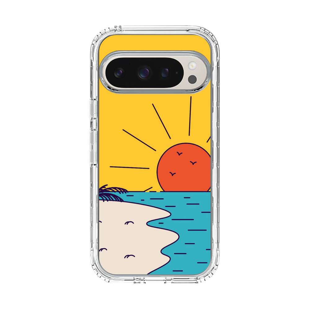 Cartoon Sonnenuntergang Strand Google Pixel 10 Pro Silikon Hülle● Sehr robust & langlebig