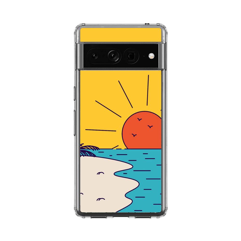 Cartoon Sonnenuntergang Strand Google Pixel 7 Pro Silikon Hülle● Sehr robust & langlebig