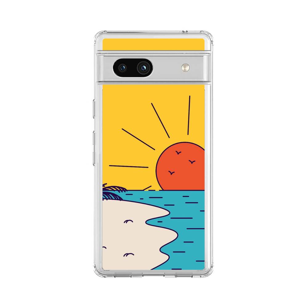 Cartoon Sonnenuntergang Strand Google Pixel 7a Silikon Hülle● Sehr robust & langlebig