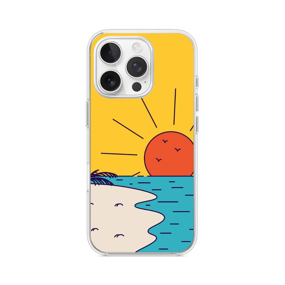 Cartoon Sonnenuntergang Strand iPhone 15 Pro MagSafe‑kompatible Silikonhülle mit Kamera‑Kickstand● Sehr robust & langlebig