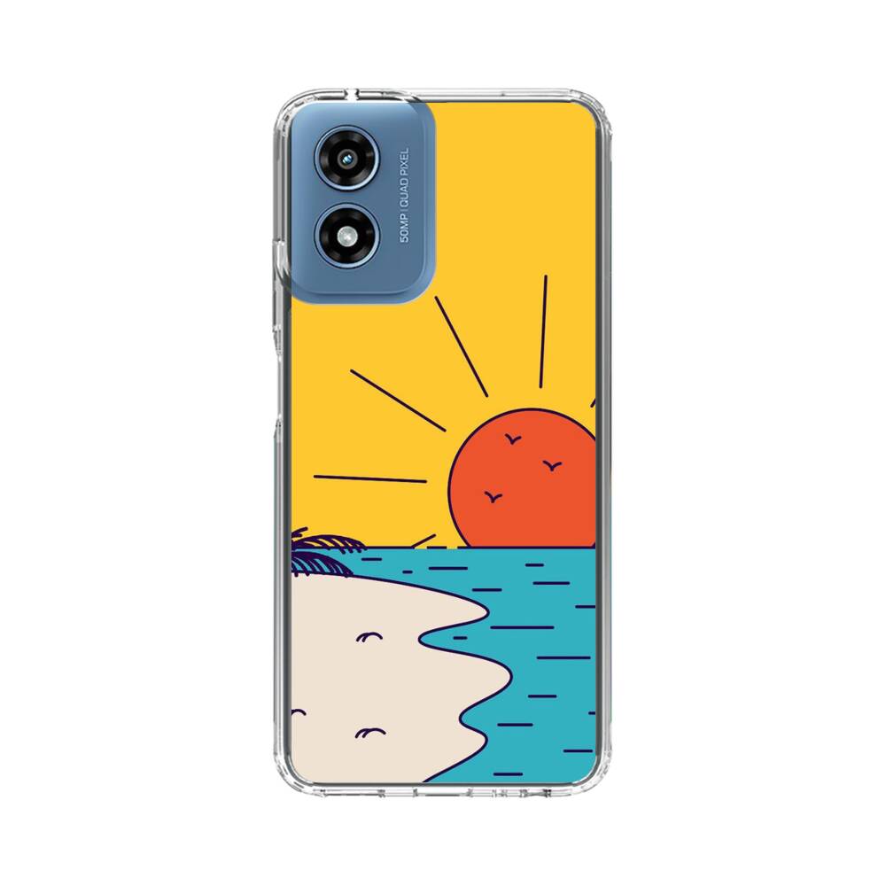 Cartoon Sonnenuntergang Strand Motorola Moto G Play (2024) Silikon Hülle● Sehr robust & langlebig