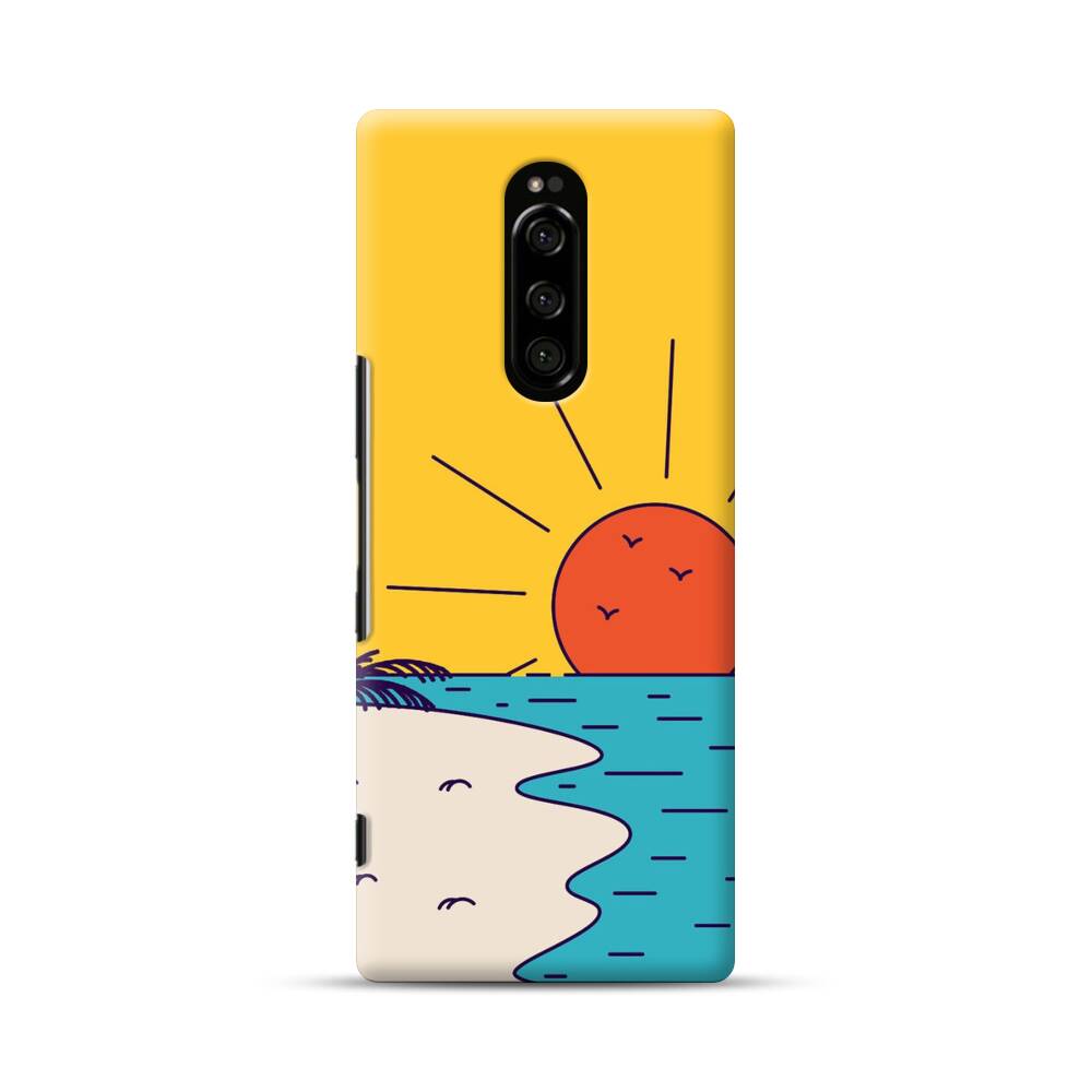 Cartoon Sonnenuntergang Strand Sony Xperia 1 Hülle● Rundum bedruckbar