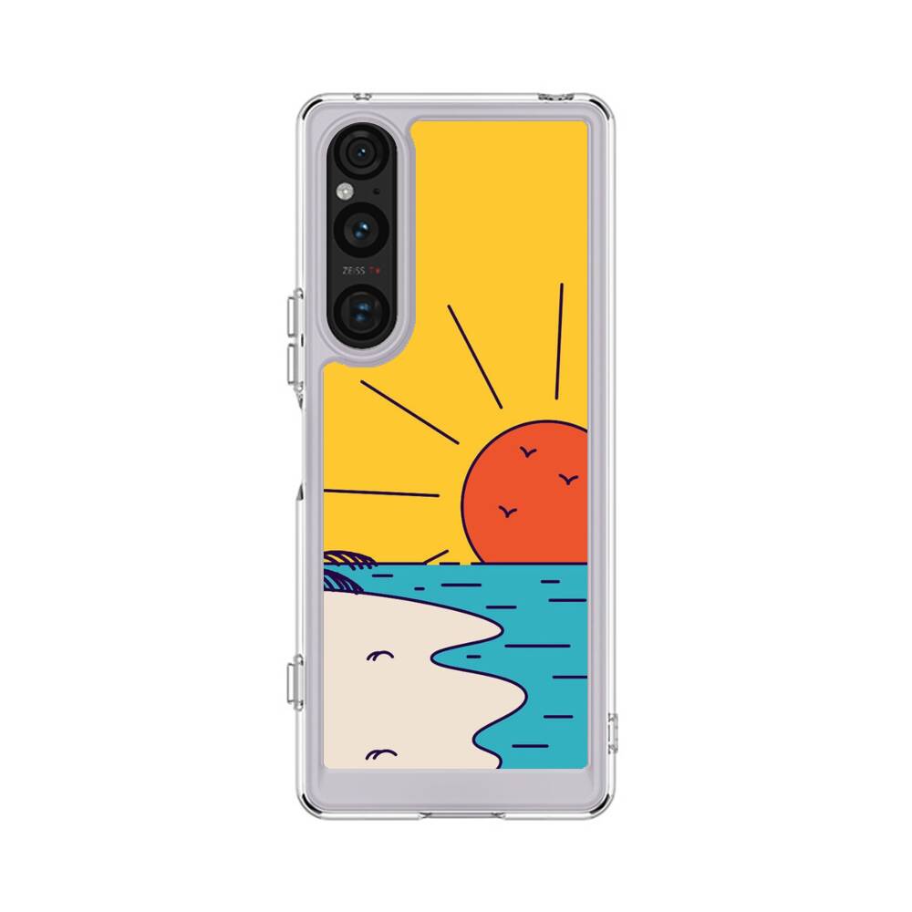 Cartoon Sonnenuntergang Strand Sony Xperia 1 V Silikon Hülle● Sehr robust & langlebig