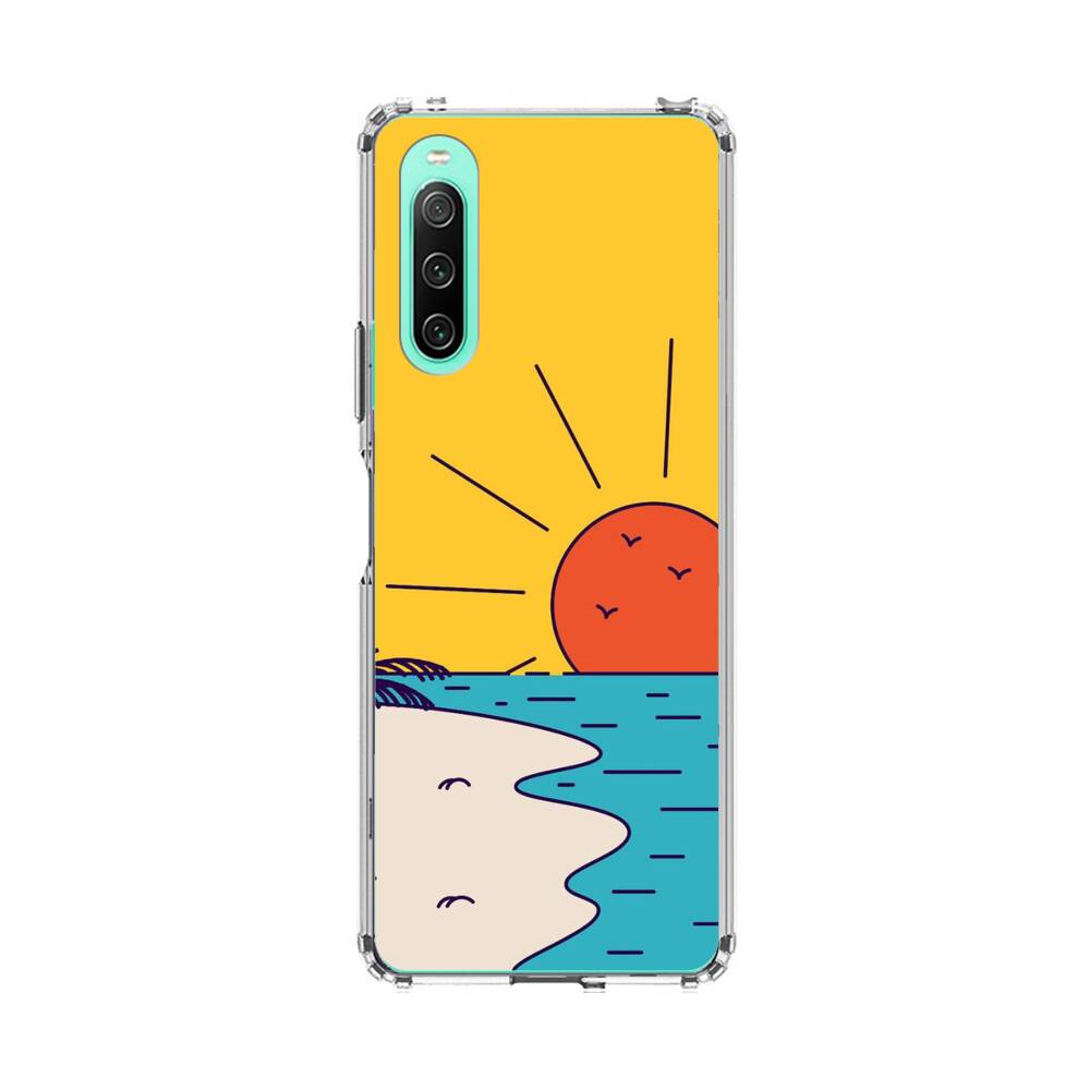 Cartoon Sonnenuntergang Strand Sony Xperia 10 IV Silikon Hülle● Sehr robust & langlebig