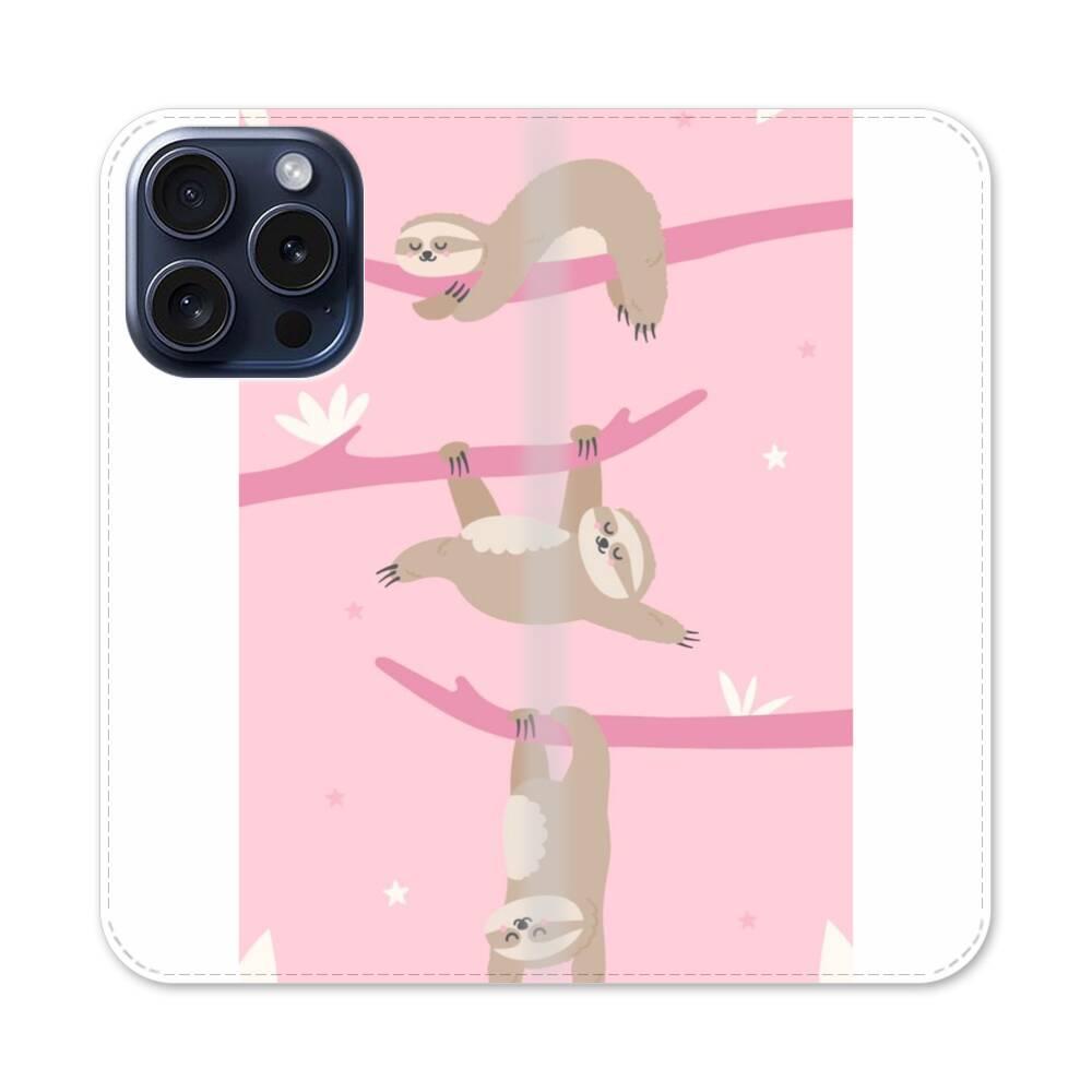 Pinke Faultiere Apple iPhone 15 Pro Flip Case● Seitlich klappbar