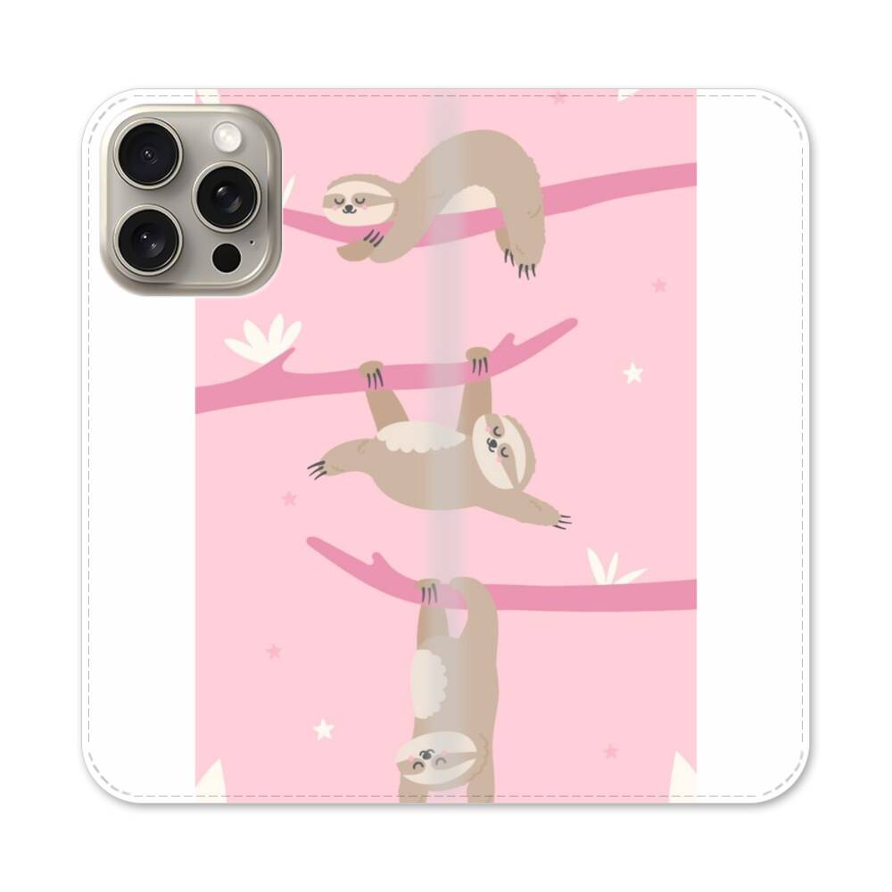 Pinke Faultiere Apple iPhone 15 Pro Max Flip Case● Seitlich klappbar
