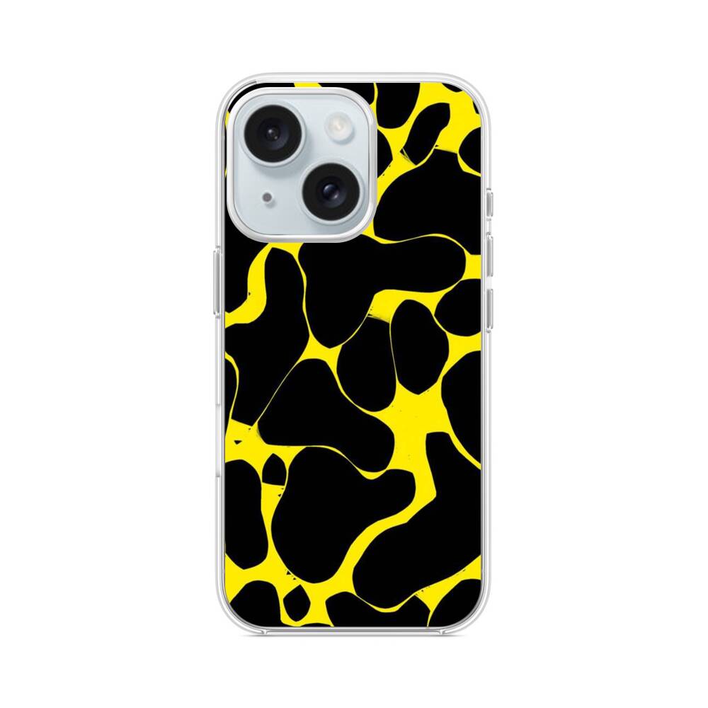 Schwarz-gelbe Kräuselung iPhone 15 MagSafe‑kompatible Silikonhülle mit Kamera‑Kickstand● Sehr robust & langlebig