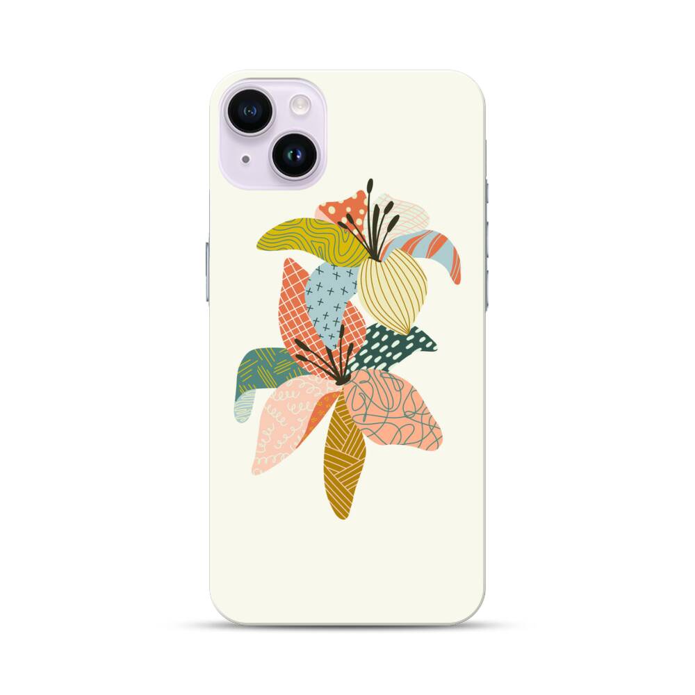 Gesteppte Lilien Apple iPhone 14 Plus Hülle● Rundum bedruckbar