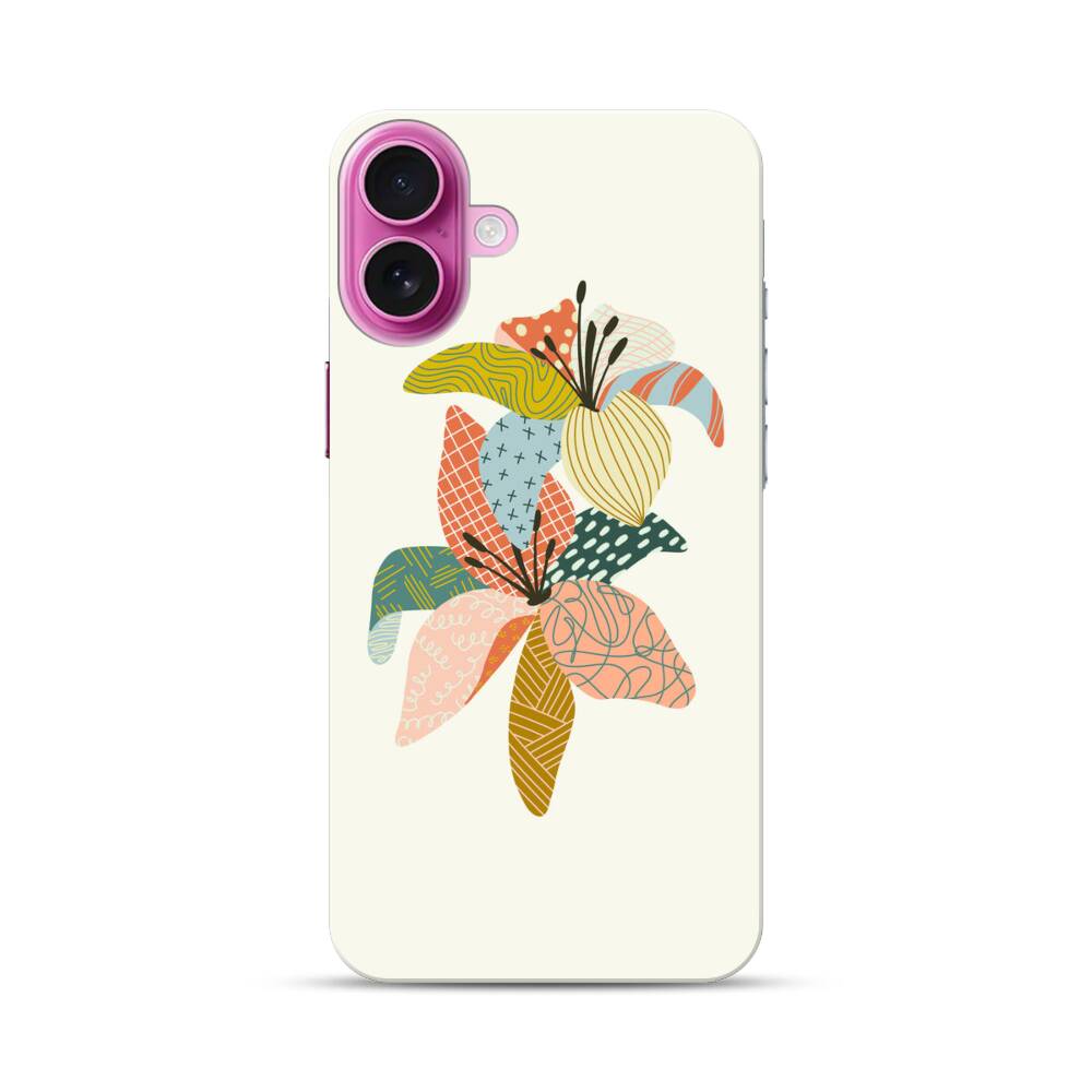 Gesteppte Lilien Apple iPhone 16 Plus Hülle● Rundum bedruckbar
