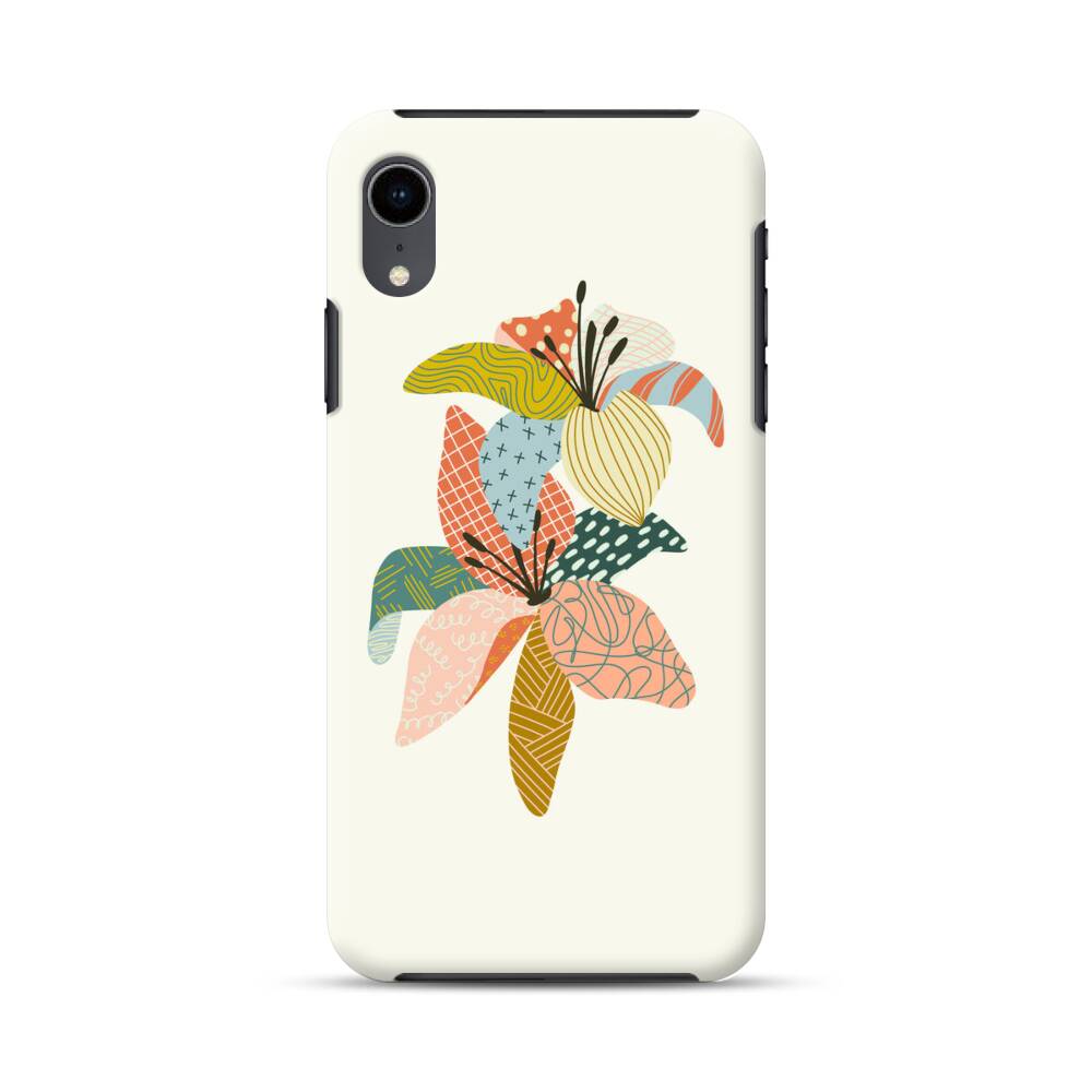 Gesteppte Lilien iPhone XR Hybrid Hülle● Rundum bedruckbar