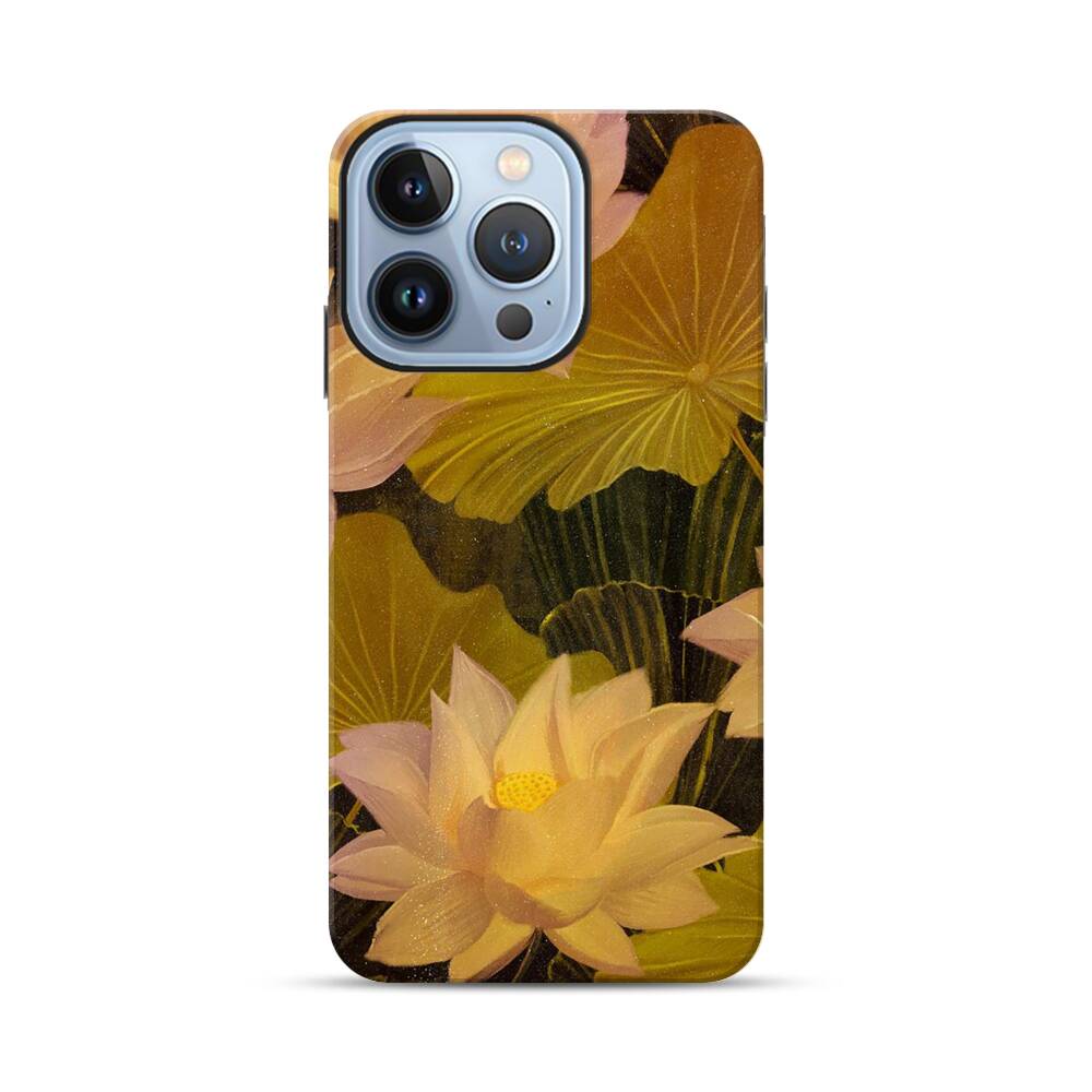 Schöne Lotusblüten in der Nacht Apple iPhone 13 Pro Hybrid Case● Rundum bedruckbar