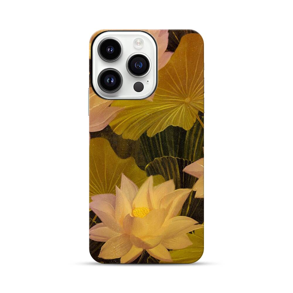 Schöne Lotusblüten in der Nacht Apple iPhone 14 Pro Hybrid Case● Rundum bedruckbar