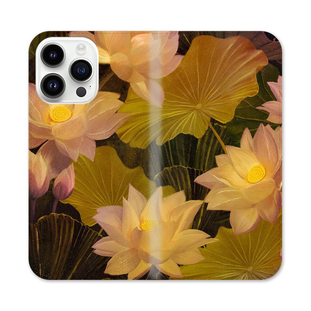 Schöne Lotusblüten in der Nacht Apple iPhone 14 Pro Max Flip Case● Seitlich klappbar