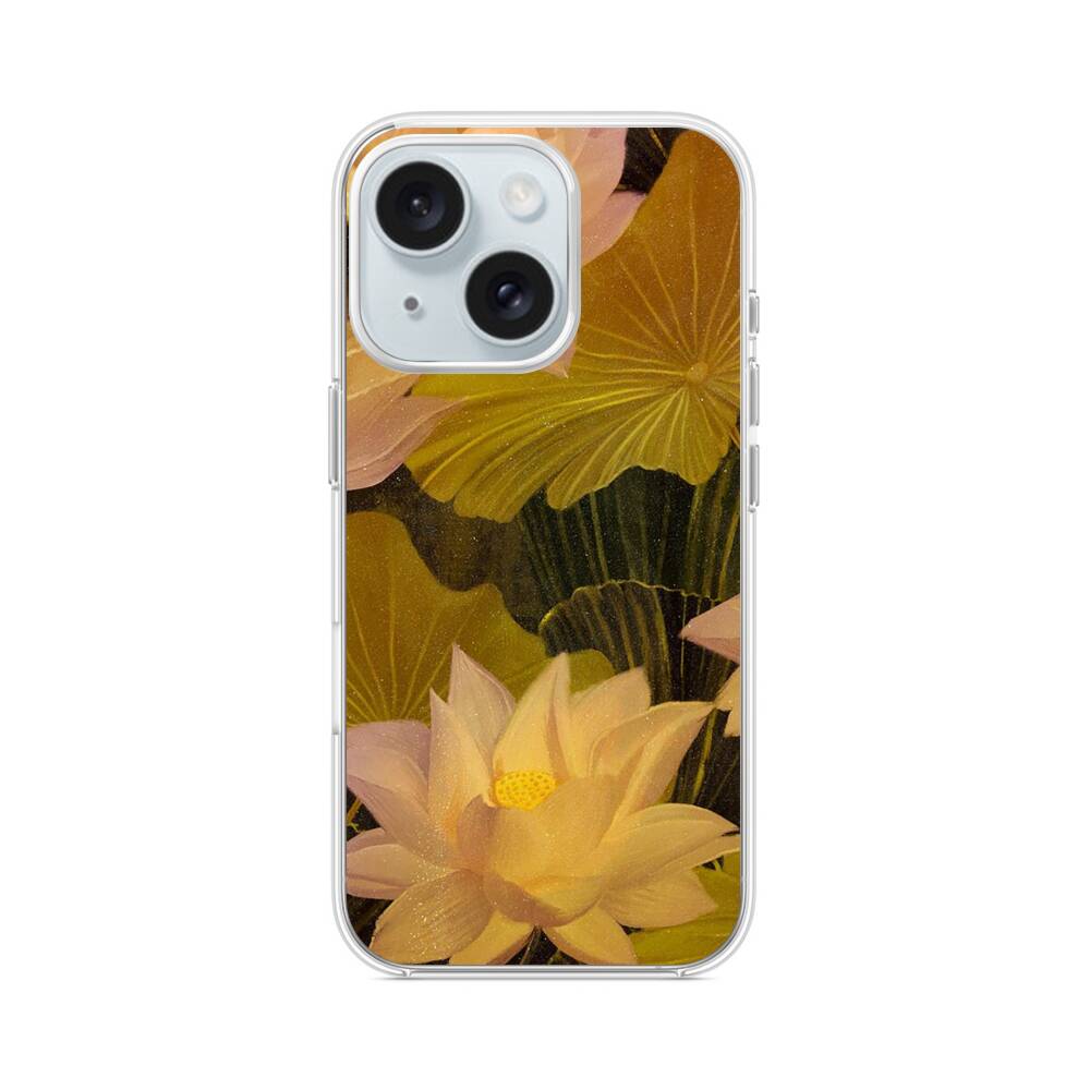Schöne Lotusblüten in der Nacht iPhone 15 MagSafe‑kompatible Silikonhülle mit Kamera‑Kickstand● Sehr robust & langlebig