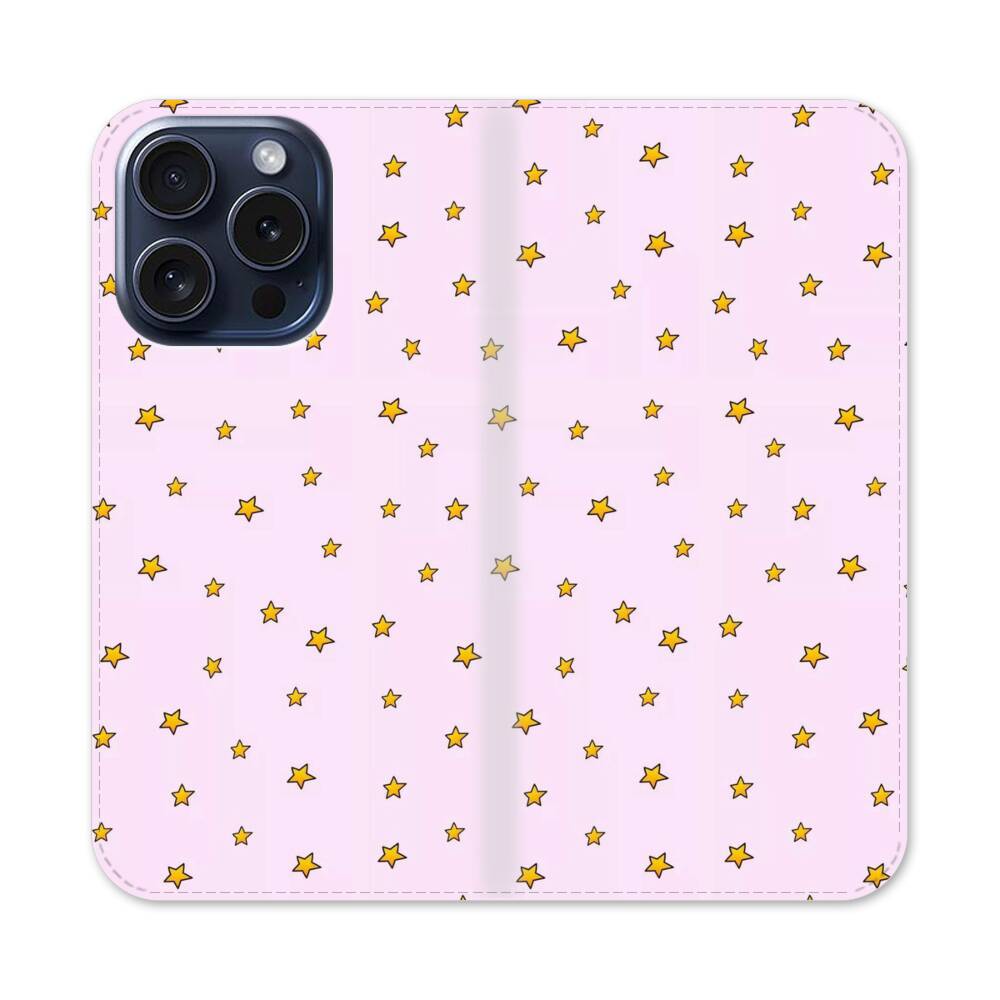 Rosa Sterne Apple iPhone 15 Pro Flip Case● Seitlich klappbar