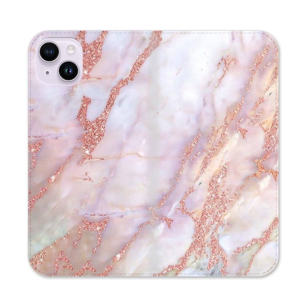 Goldrosa Marmor Apple iPhone 14 Plus Flip Case● Seitlich klappbar
