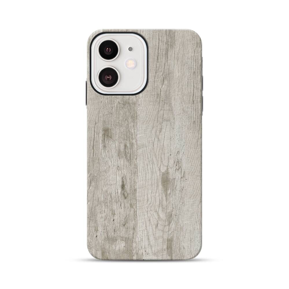 Graues Holz Apple iPhone 12 Mini Hybrid Case● Rundum bedruckbar