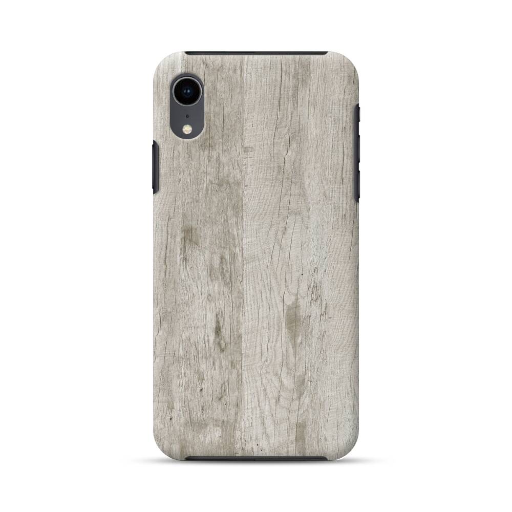 Graues Holz iPhone XR Hybrid Hülle● Rundum bedruckbar