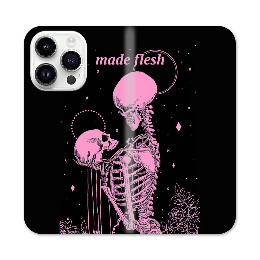 Pinke Gerippe Apple iPhone 14 Pro Flip Case● Seitlich klappbar