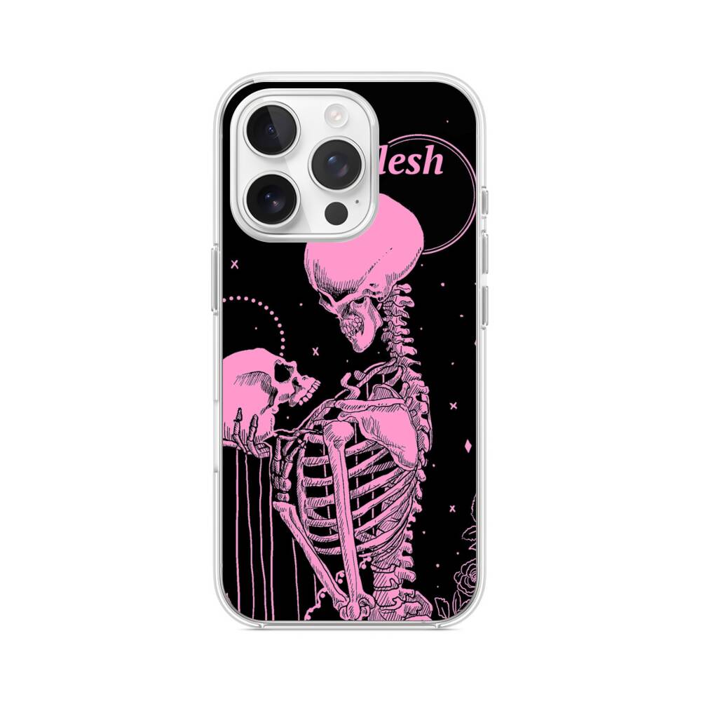 Pinke Gerippe iPhone 14 Pro MagSafe‑kompatible Silikonhülle mit Kamera‑Kickstand● Sehr robust & langlebig