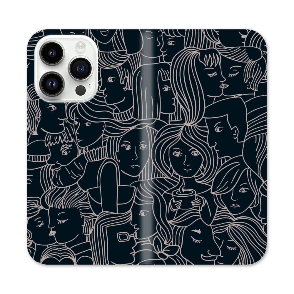 Line Art Menschen Apple iPhone 14 Pro Flip Case● Seitlich klappbar