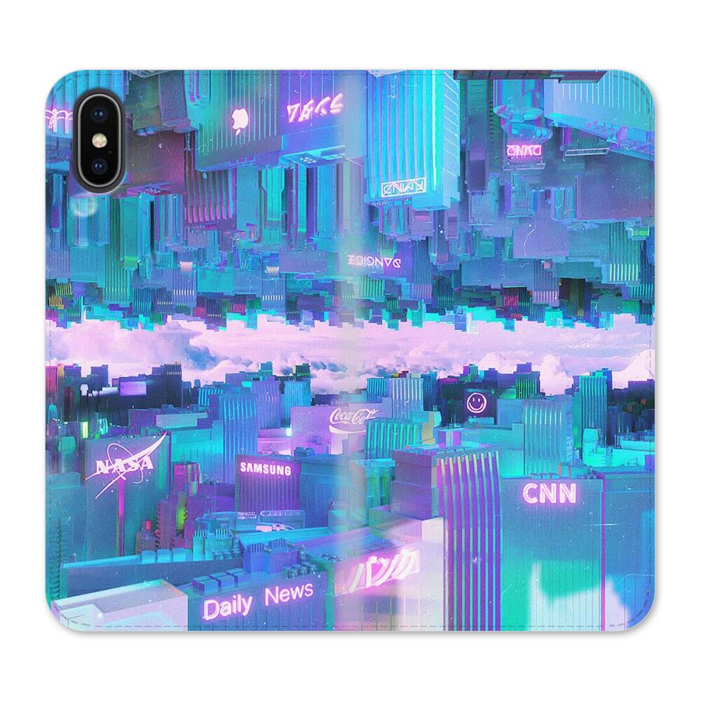 Neon Horizont iPhone XS Wallet Leder Hülle● Seitlich klappbar