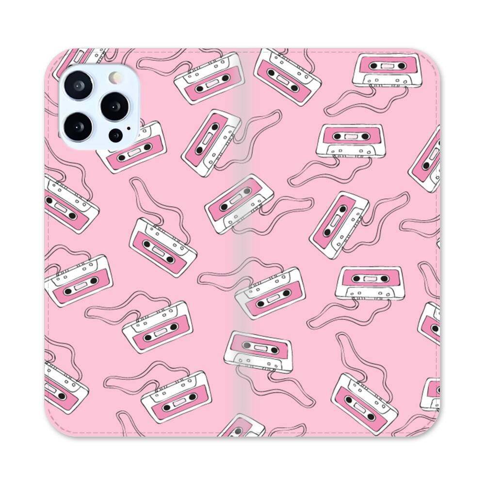 Pinke Kassetten Apple iPhone 12 Pro Flip Case● Seitlich klappbar