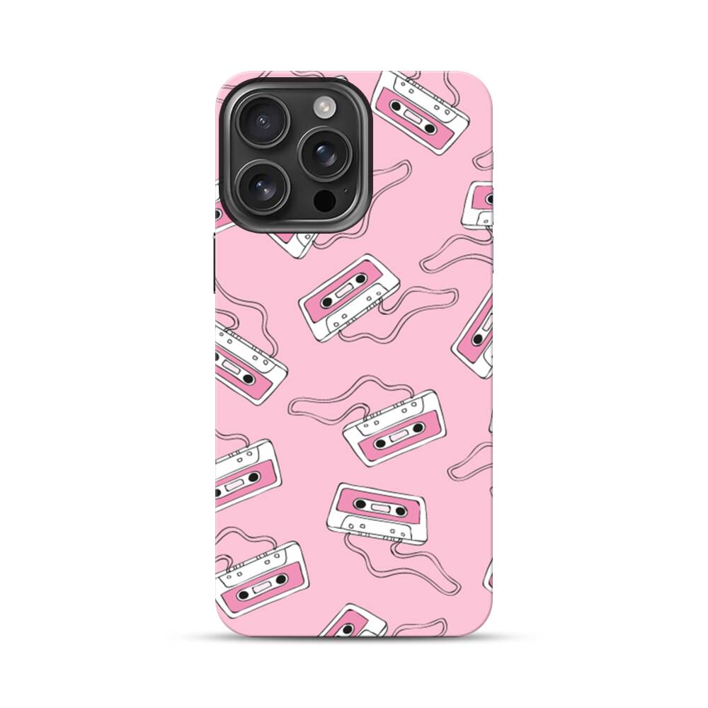 Pinke Kassetten Apple iPhone 16 Pro Max Hybrid Case● Rundum bedruckbar