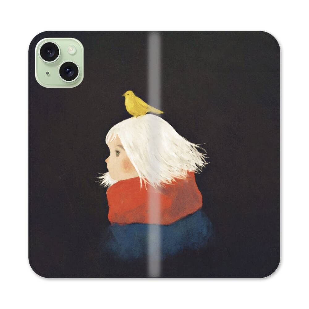 Gelber Mädchen auf dem Mädchen Apple iPhone 15 Plus Flip Case● Seitlich klappbar