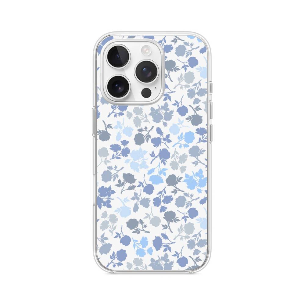 Blaue Blumen iPhone 15 Pro MagSafe‑kompatible Silikonhülle mit Kamera‑Kickstand● Sehr robust & langlebig