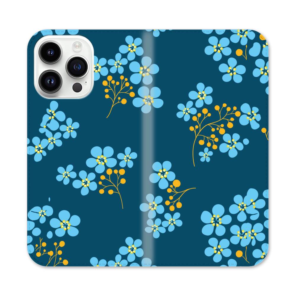 Blaue Blumen Apple iPhone 14 Pro Max Flip Case● Seitlich klappbar