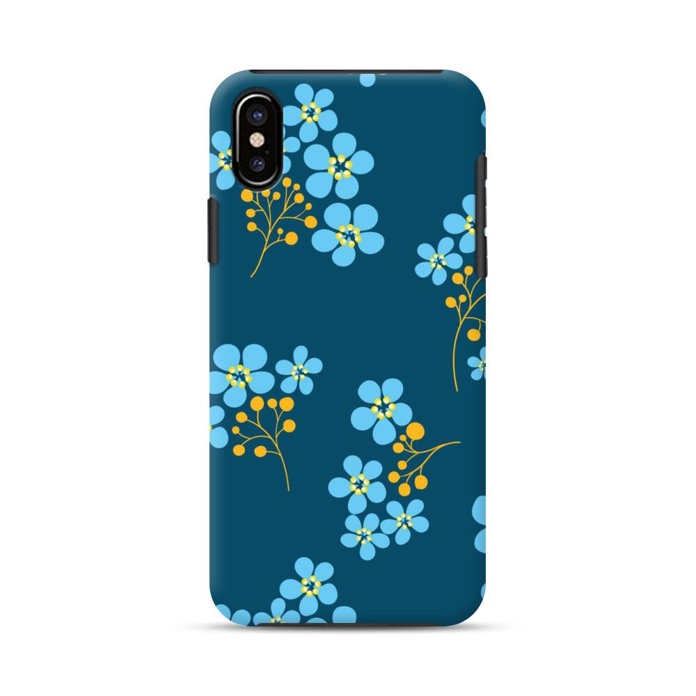 Blaue Blumen iPhone X Hybrid Hülle● Rundum bedruckbar