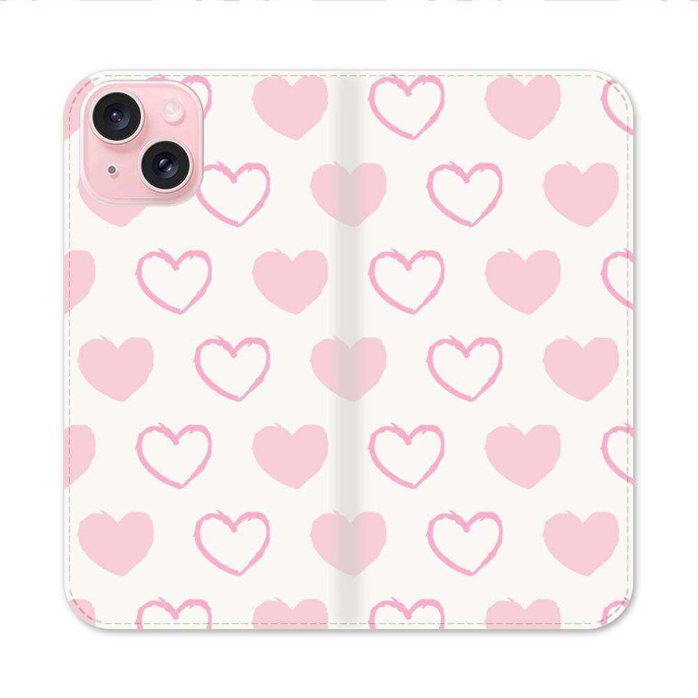 Pinke Herzchen Apple iPhone 15 Flip Case● Seitlich klappbar