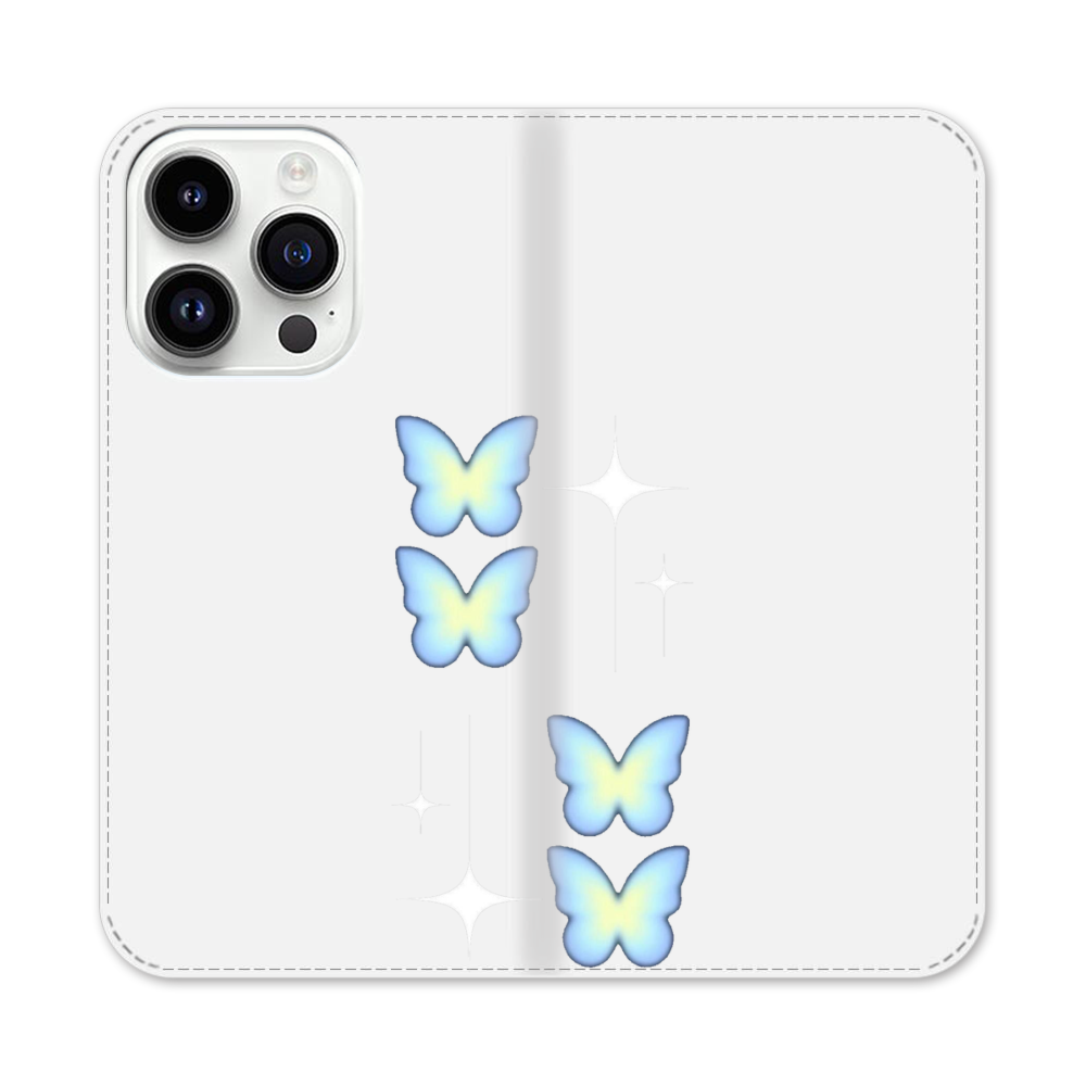 Blaue Schmetterlinge Apple iPhone 14 Pro Flip Case● Seitlich klappbar