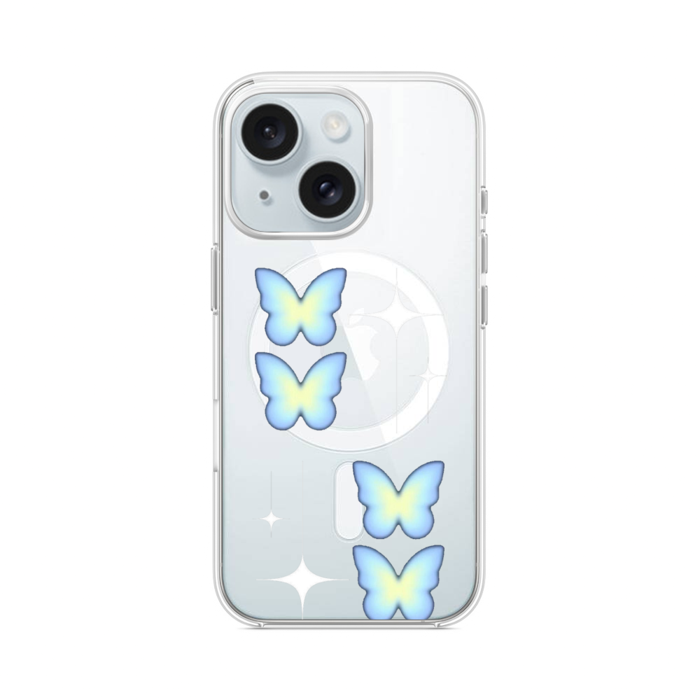 Blaue Schmetterlinge iPhone 15 MagSafe‑kompatible Silikonhülle mit Kamera‑Kickstand● Sehr robust & langlebig