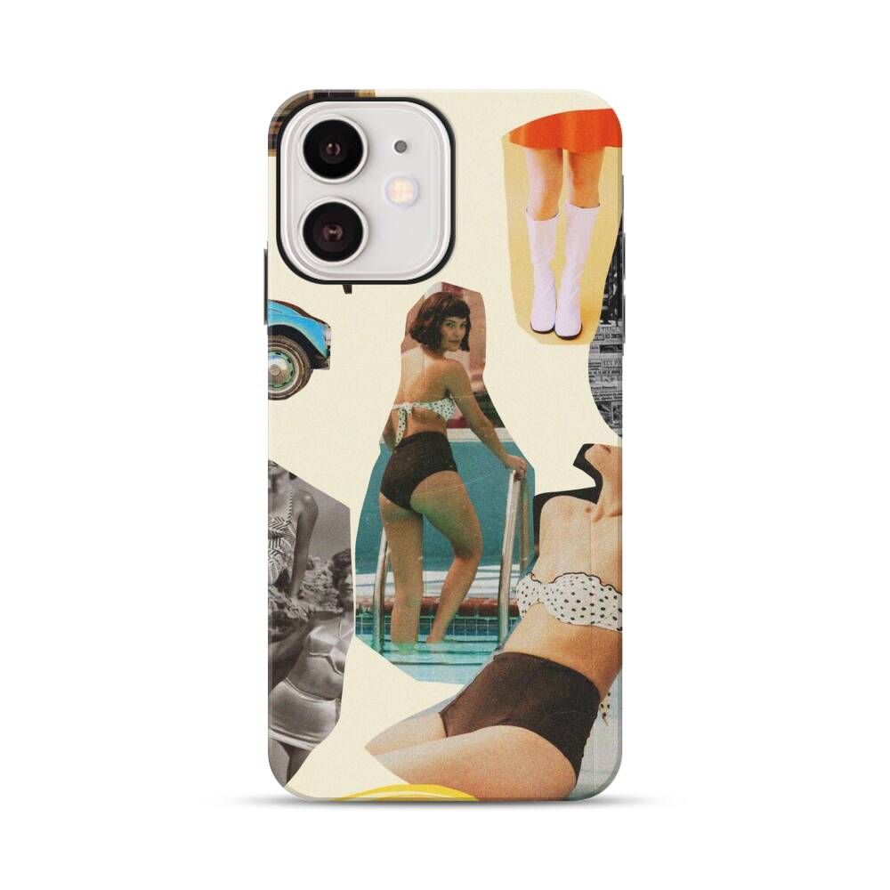 Retro Damen Collage Apple iPhone 12 Hybrid Case● Rundum bedruckbar