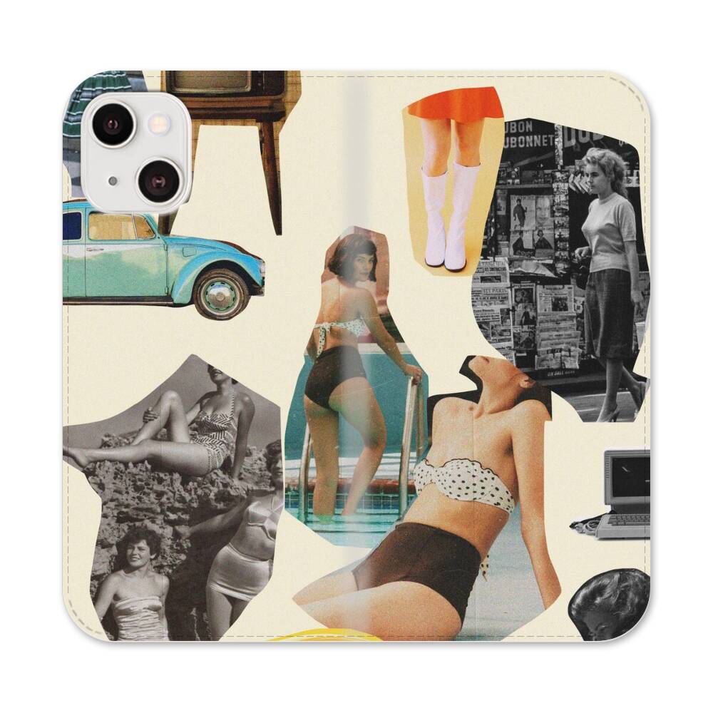 Retro Damen Collage Apple iPhone 13 Mini Flip Case● Seitlich klappbar