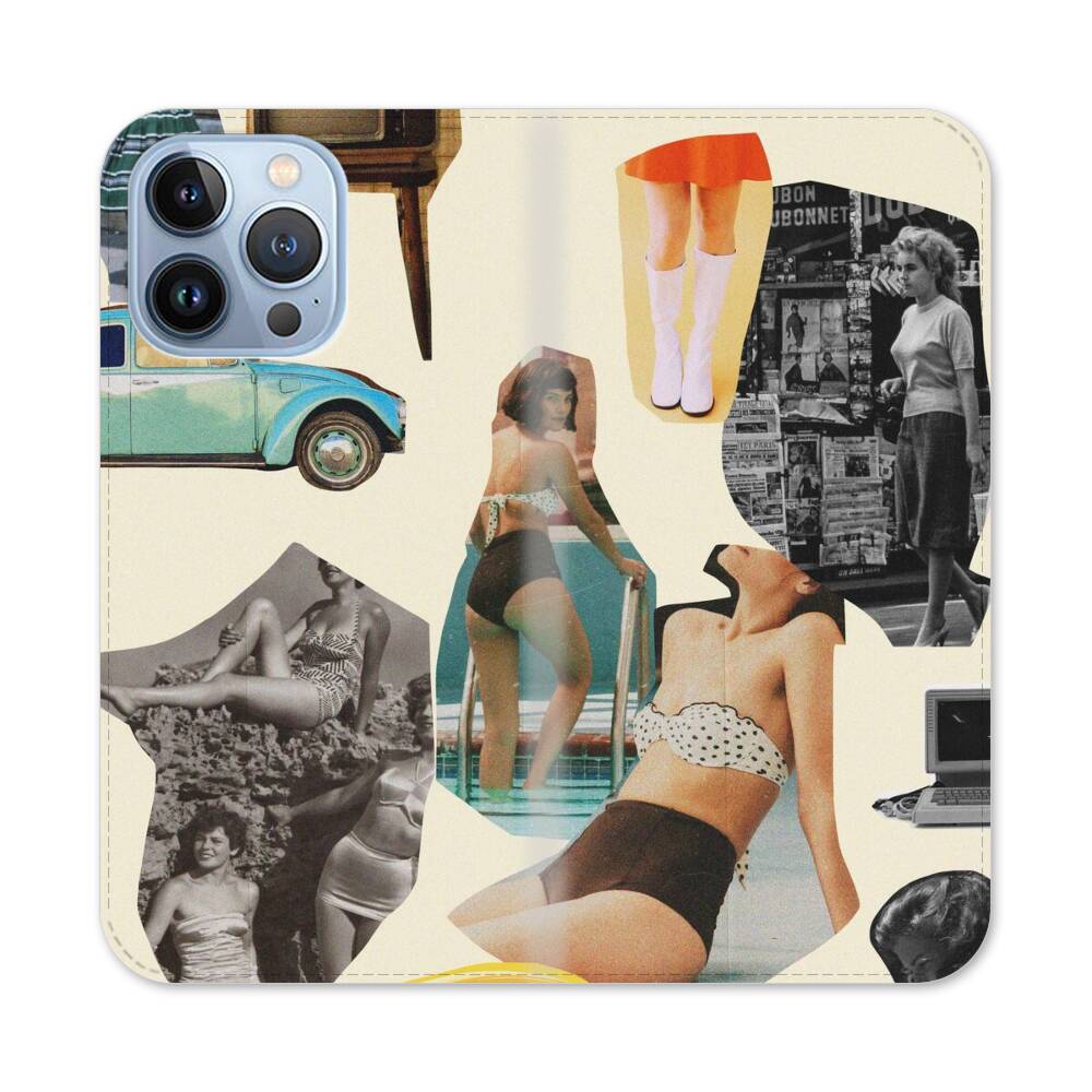 Retro Damen Collage Apple iPhone 13 Pro Flip Case● Seitlich klappbar