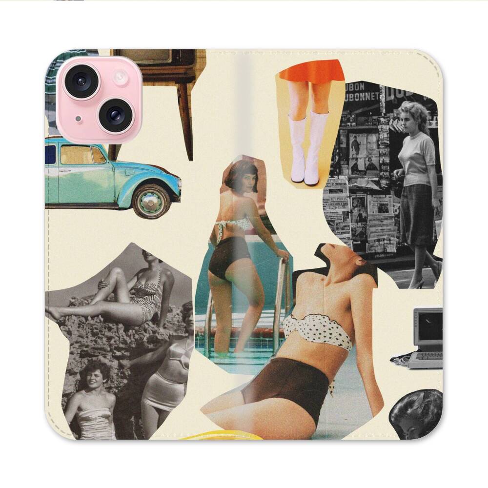 Retro Damen Collage Apple iPhone 15 Flip Case● Seitlich klappbar