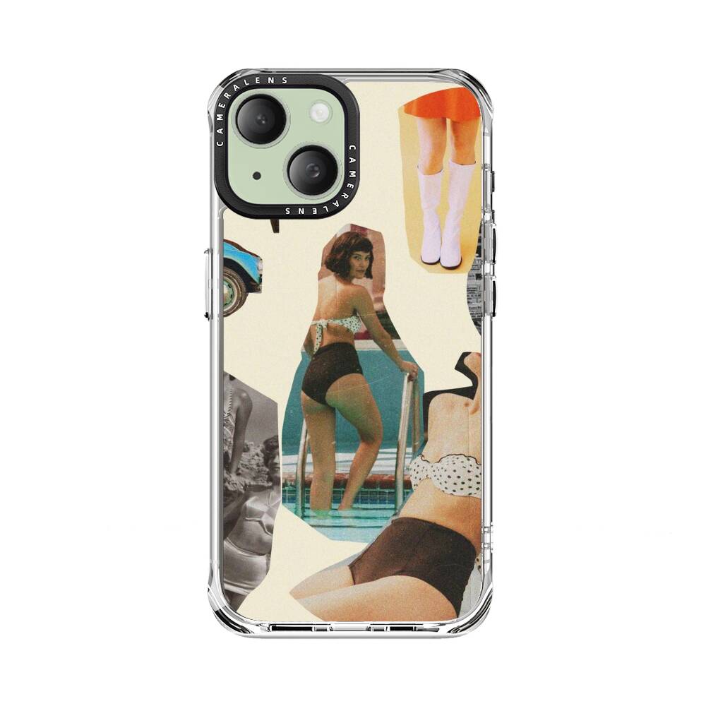 Retro Damen Collage Apple iPhone 15 Plus Silikon Hülle● Sehr robust & langlebig