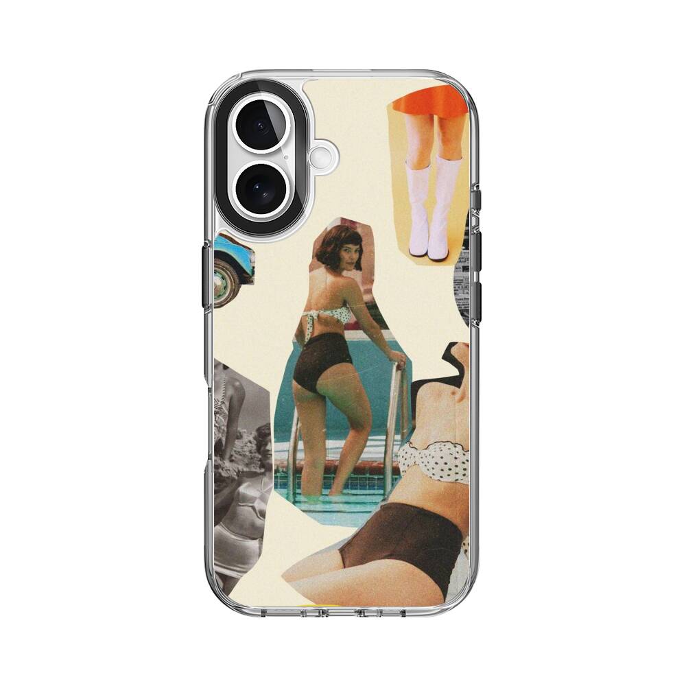 Retro Damen Collage Apple iPhone 16 Silikon Hülle● Sehr robust & langlebig